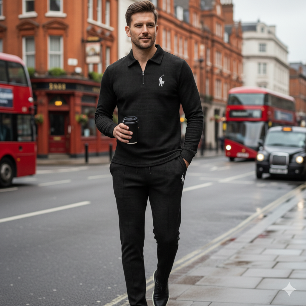 This polo shirt and trousers set features a sleek, minimalist design with a modern fit. Made from breathable, lightweight fabric with a refined texture, it offers exceptional comfort without compromising style.